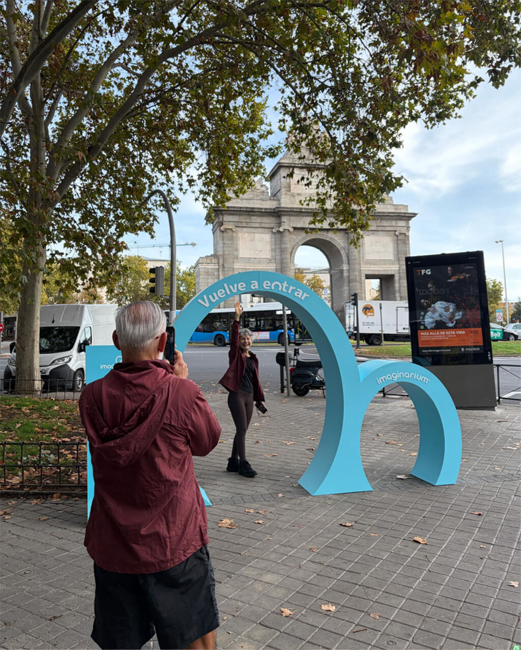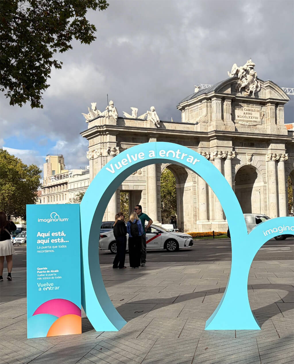 Madrid tiene muchas de las puertas más famosas de España, pero la de Imaginarium es la más reconocible de todas. Bajo el concepto “Vuelve a entrar”, llevamos sus míticas puertas hasta las más emblemáticas de la ciudad para invitar a la gente a atravesarlas, convirtiendo ese instante en una experiencia emocional ligada al recuerdo, la imaginación y el juego.